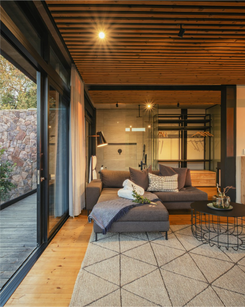 Our four Luxury Suites are designed to maximise views of the surrounding wilderness, each featuring a private solar-heated plunge pool — perfect for unwinding or enjoying a glass of sparkling wine. Suites 9 and 10 include interleading doors, allowing them to be arranged as a family unit with closed bathrooms or configured as twin rooms. Suites 7 and 8 offer open-plan baths and showers, with private enclosed WCs.